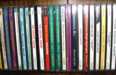 Here we see only a few of the CDs containing reissues of African American gospel music that had been transferred commercially from 78s and master tapes. These commercial CDs were an important source of recordings of rare records that would have been difficult to find otherwise.