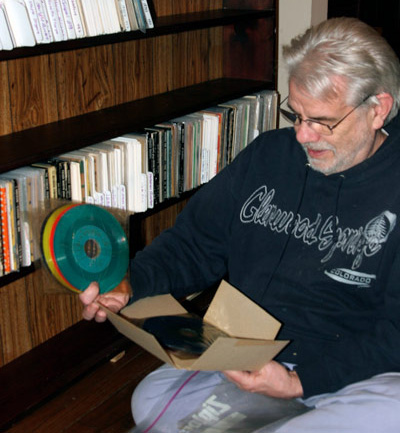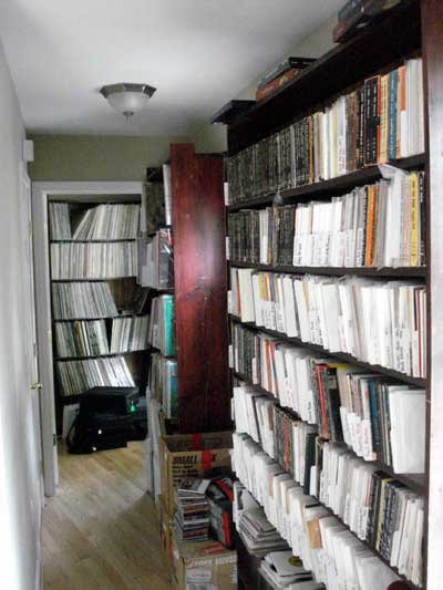 All available wall space was used for selves. On the right is our 45 rpm record collection. Beyond it are some of our LP record albums. The top five shelves of the 45 record collection contain rare recordings from the early 1950s. The bottom shelf holds rare gospel records.