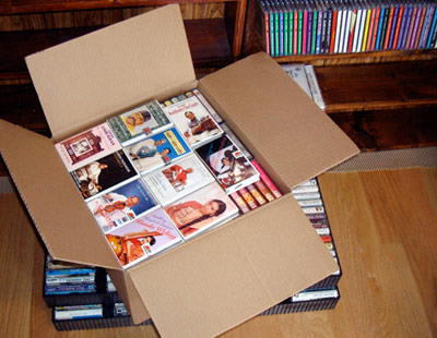 This is one of the boxes. It contains colorful cassettes of classical music recorded in India. Every box headed for storage was numbered with a description of contents printed on the label attached to each box.