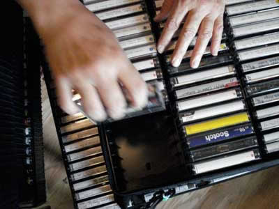 There were thousands of cassette tapes to sort. All of the tapes that needed to be digitized where loaded alphabetically into cassette racks stacked in the studio for Wave to draw from. The cassette player ran from 12 to 16 hours a day. The cassette collection consisted of transfers that I had made during the 1970s and 1980s of recordings borrowed from other collections. Also, I had amassed a rather large number of prerecorded cassettes of music that I was unable to find on records. These were mostly rare recordings of gospel music and Indian classical music. We also transferred to computer our collection of VHS tapes of live music events.