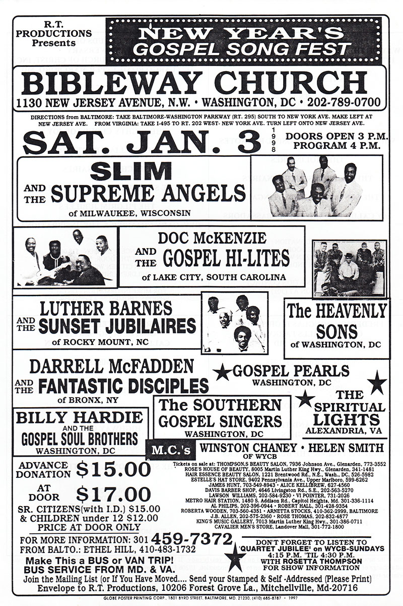 I also discovered African-American, also known as "black," gospel music. My mentor was my good friend Barky, of Barky's Spirituals in downtown Richmond Virginia,where I lived from 1995 to 2000. His store is still the best, and perhaps the only, traditional gospel music store in the USA. The East Coast from Washington, DC, down to Raleigh, North Carolina was a stong area for traditional African-American gospel music, and Mary Ellen and I attended concerts on a regual schedule, feeling very priveleged to be a part of a genre of music that few people of caucasion decent appeared to know about. As with the music of the Southern Gospel tradition, we accumulated a large collection of recordings, and accumulated memories we will never forget. Traditional black gospel music is something quite apart from the the contempory types of gospel music that have been overtaken by commercial interests and have mostly left behind what to us really mattered in an important American music tradition.
