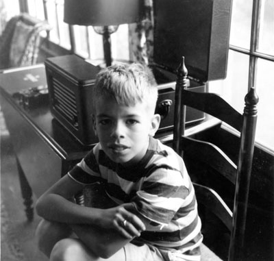My mind was always filled with music. I composed new music in my head, humming it, trying to mimic the sounds of various instruments of the orchestra. I could replay complete records in my mind also, exactly as they sounded when I played them. All of this constituted my inner world. On the family trip to visit Aunt Dorothy in Cape Cod, my aunt asked me to pose for a photograph. Being a painter, she wanted to do a charcoal portrait of me based on this photo. I told her I would not sit for a photo unless it included her record player. Here is the result.